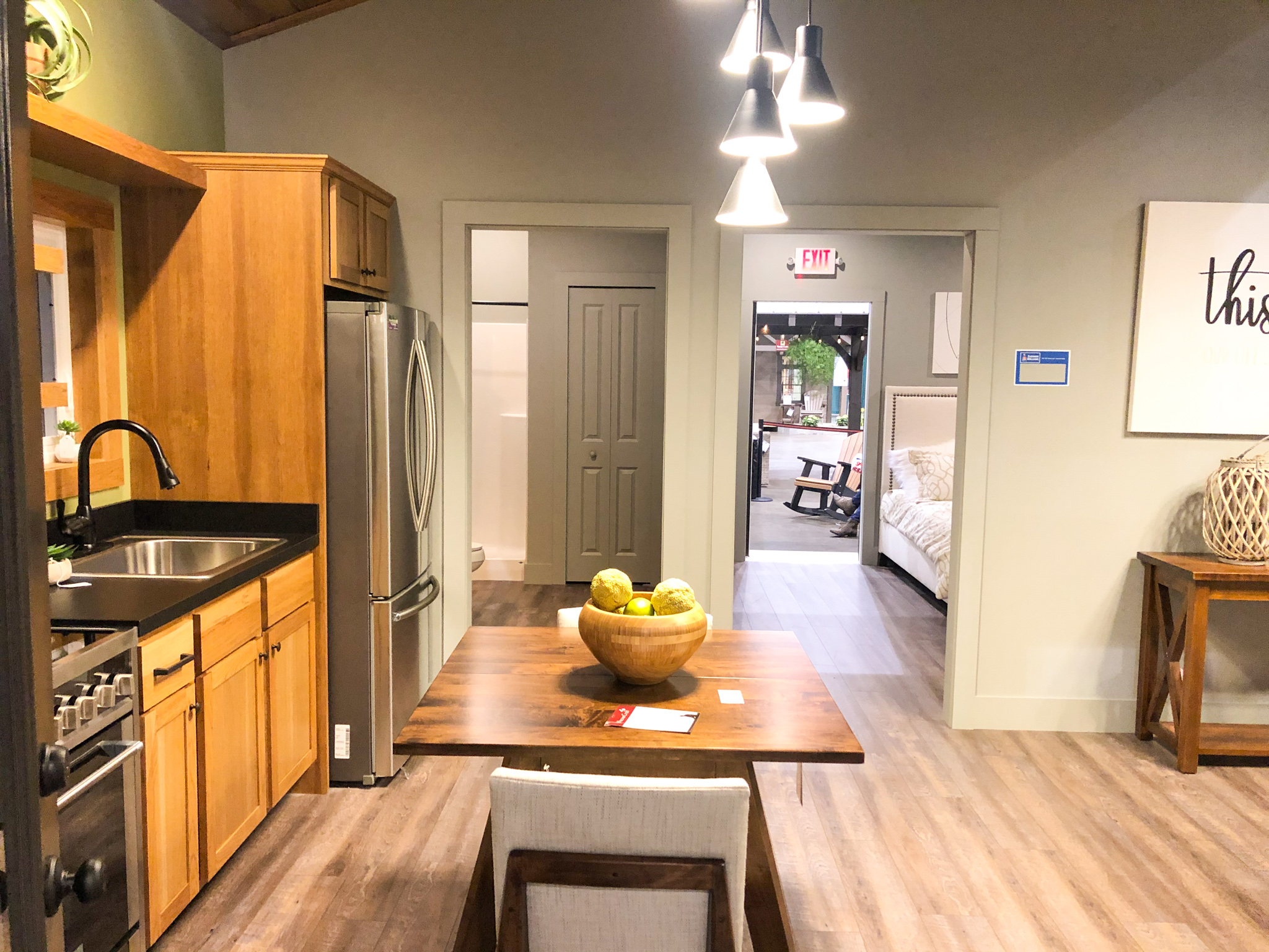 It was a hit with so many of the guests who walked through our display. The tall ceilings and open floor plan adds a modern take to a traditional cabin. Modern amenities and design, while ensuring the same timeless craftsmanship for which our Amish Country crews are known.