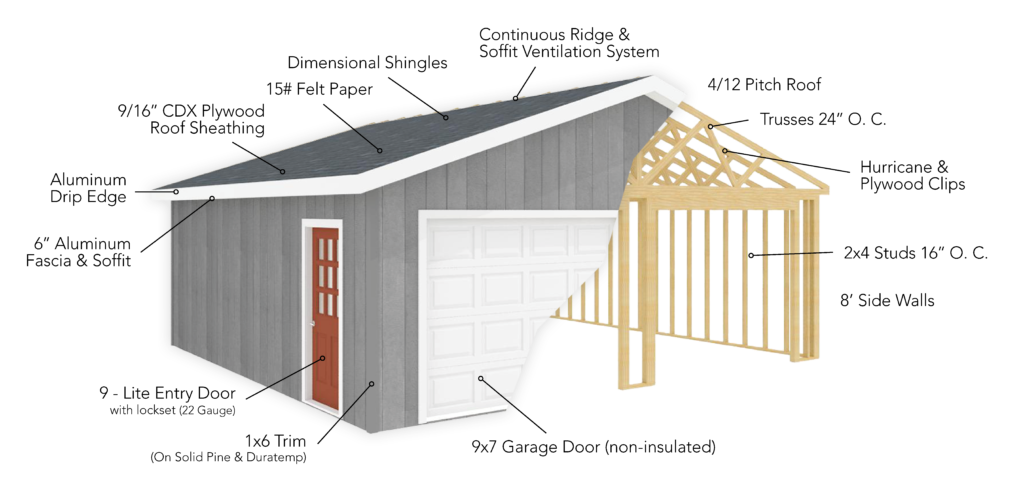 The CLASSIC garage has options for a two car basic, two car deluxe, or three car deluxe matrix. This model is perfect for cars, trucks, boats or simply tons of gear.